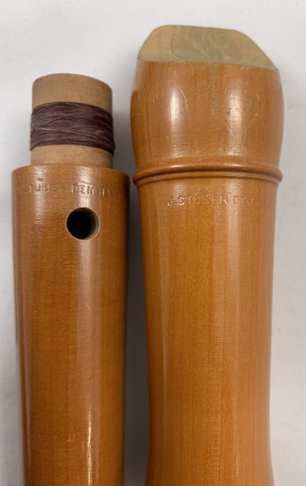 Houten sopraan blokfluit met Duitse boring gemaakt door J. Stüber, Den Haag.