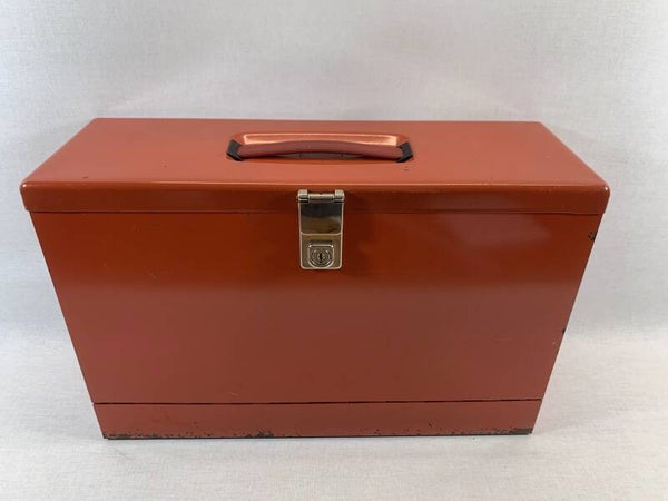 Engelse vintage rode metalen Twinlock Personal File koffer, jaren '70