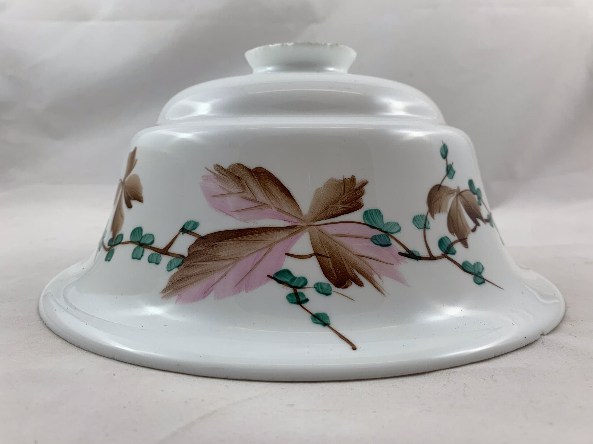 Opaline handbeschilderd lampkapje, vogeltjes en bladmotief, jaren '30-'40
